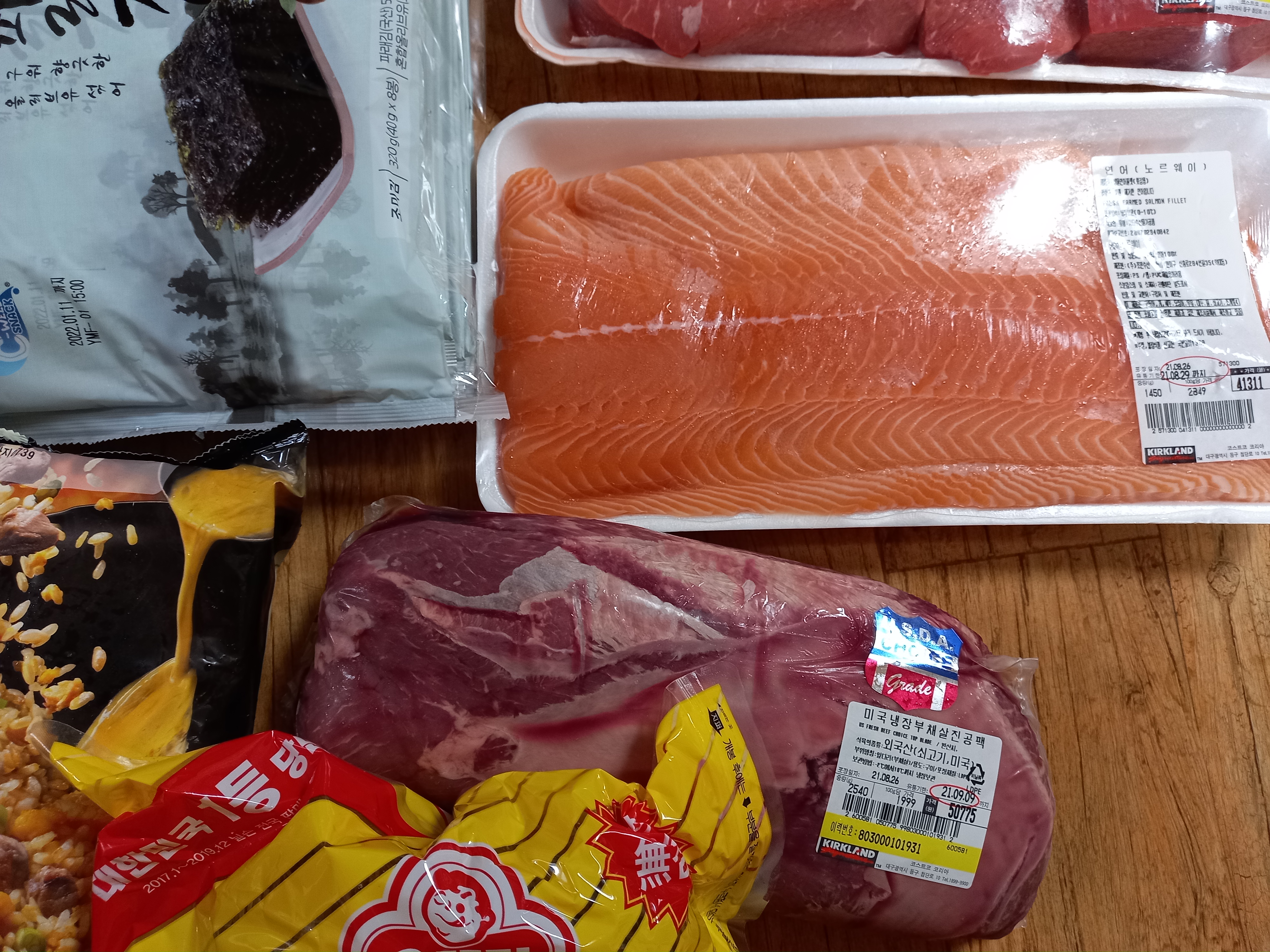 옷도 좀 사고 새우,고기, 연어.. 집에서 먹을거리 구입~